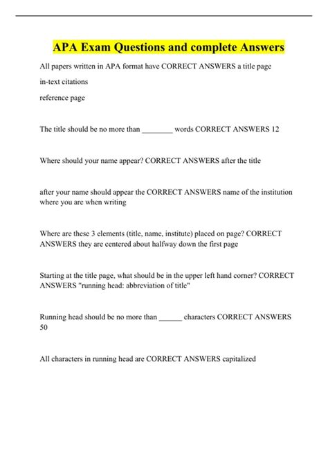 Read Apa Test Questions And Answers Kindle Editon